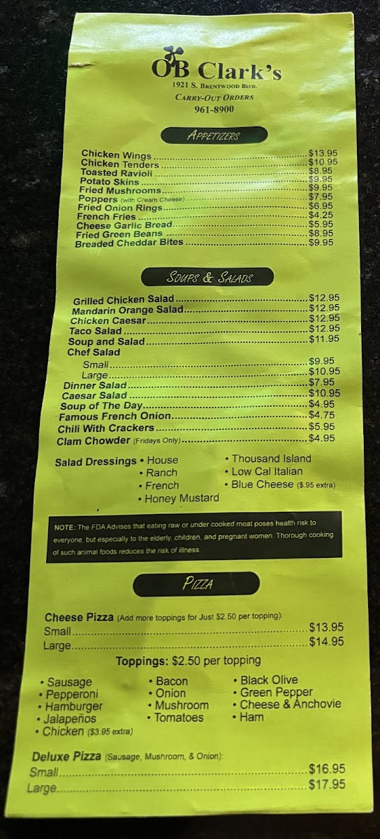 Welcome to OB. Clark's, a beloved sports bar nestled in Brentwood, Missouri. This vibrant establishment has been a cornerstone of the community for nearly 40 years, offering a diverse and satisfying menu that caters to all tastes.